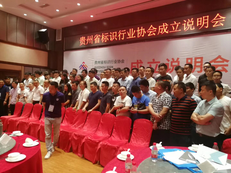 2018年5月19日,在中国·贵阳市,隆重举行了贵州省标识行业协会成立说明会。贵阳省标识行业协会(筹)成立说明大会成功召开,参加会议的有来自贵阳及贵州省各地州的120余家企业代表出席。筹备组详细的介绍了关于成立协会的意义和作用,广大会员加入协会可以享受的权利和义务等等。经过筹备组委会的详细介绍,广大业内同仁们信心满满,热情高涨,对于贵州标协的诞生充满期待,对于标协的未来充满信心。报名现场络绎不绝,纷纷主动报名,热闹非凡,当天报名企业达到了120余家,说明会圆满成功。广旭数控贵州省唯一指定经销商:贵州利伟创机电设备有限公司的独家冠名赞助欢迎晚宴将大会推向高潮,广大业内精英们欢聚一堂,觥筹交错,欢声笑语,好一片喜庆祥和的景象。